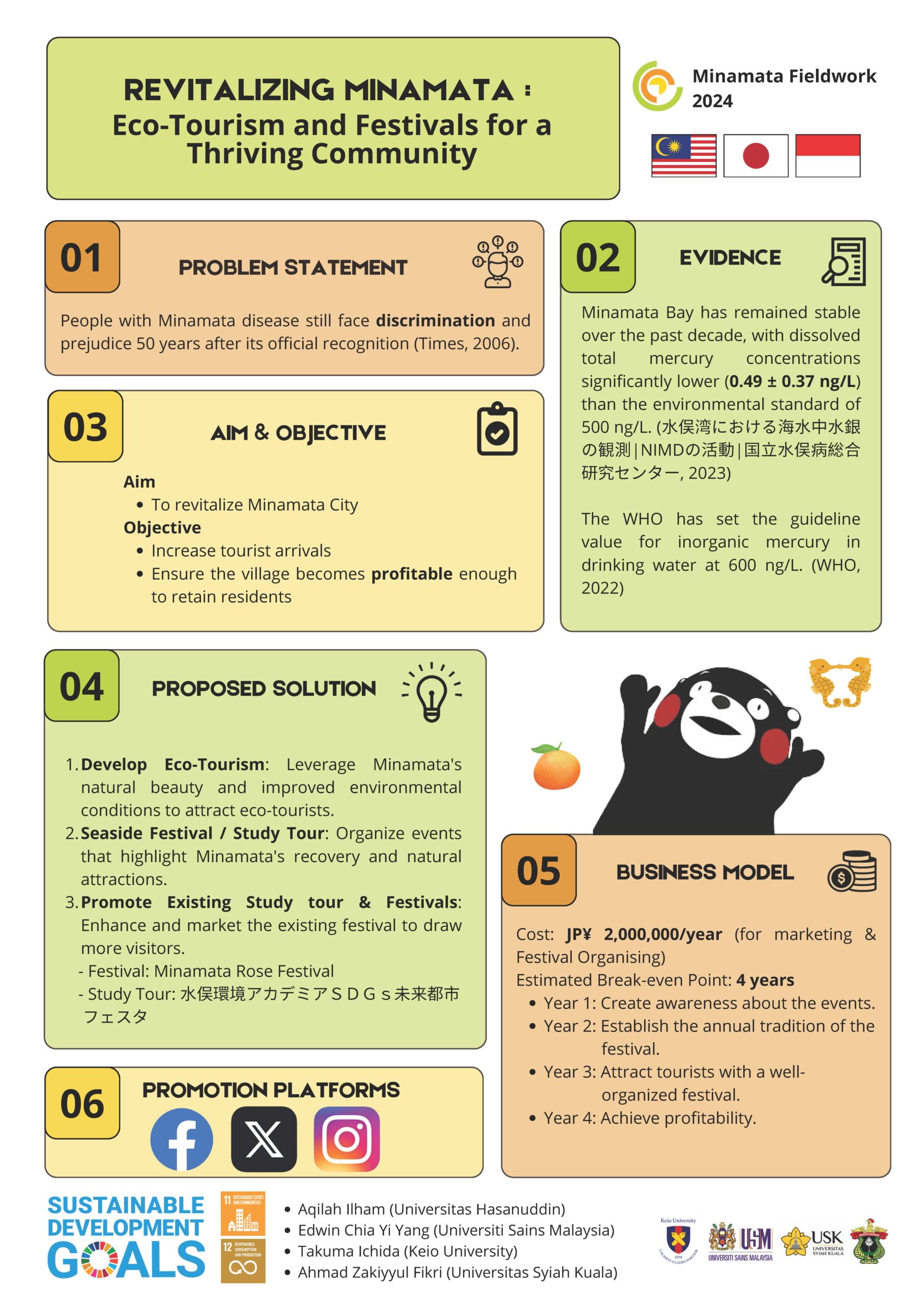 During the fieldwork, students engaged in discussions with stakeholders for a deeper investigation of the issues faced by the local community. Then, propose possible solutions for sustainable development in Minamata city.